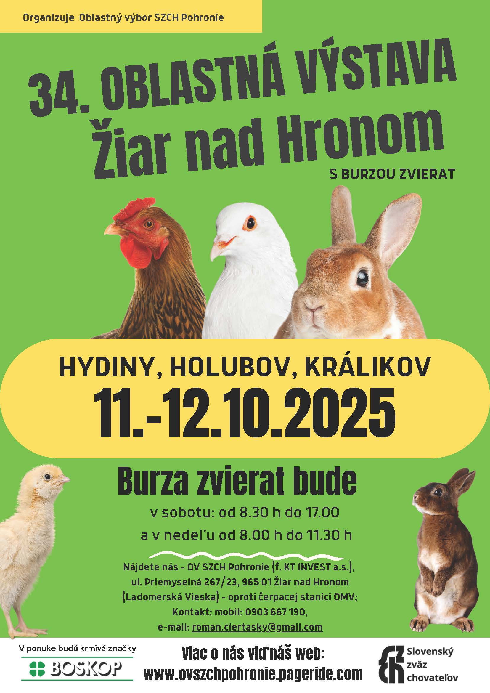 34. OBLASTNÁ VÝSTAVA Žiar nad Hronom 9. októbra 2025 od autora: Zóna Pravdy 34. OBLASTNÁ VÝSTAVA Žiar nad Hronom Viac si prečítate TU: 34. OBLASTNÁ VÝSTAVA Žiar nad Hronom Pridajte sa k nám na Facebook! ZdieľajOdporúčané článkyGalavečer ObFZ Žiar nad Hronom | SPORTNETAGEL Žiar nad HronomŽiar nad Hronom: V regióne boli chrípkové prázdniny…Žiar nad Hronom: Súťaž AMFO 2025 otvára dvere…Podujatia Osvetové stredisko Žiar nad HronomV Rudne nad Hronom nezvýšili ceny elektriny - SME - MY Žiar